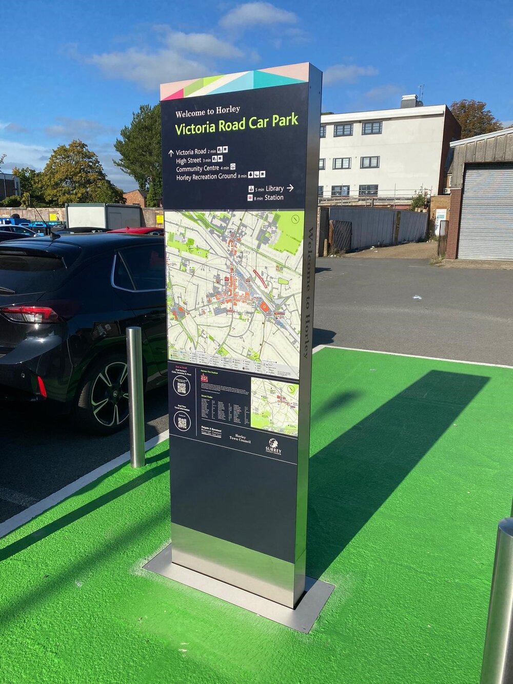 As part of the Delivering Change in Horley Town Centre project, 15 map-based wayfinding signs have been installed at key locations, including the High Street, Horley station, car parks, the footbridge and on Victoria Road. The signs help people find their way, promote what Horley has to offer and support the next phase of town centre improvements. In addition, electric vehicle charging points installed at Central Car Park are now fully operational for use. This work is part of previously completed upgrades to the car park, including resurfacing, larger family parking bays, safer pedestrian routes and new landscaping and greenery. We, Surrey County Council and Horley Town Council continue to work to deliver the wider public realm improvements along the High Street, expected to begin in early 2026.
